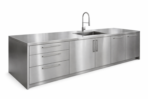 A custom-fabricated stainless steel sculpture designed to elevate the surrounding environment.
